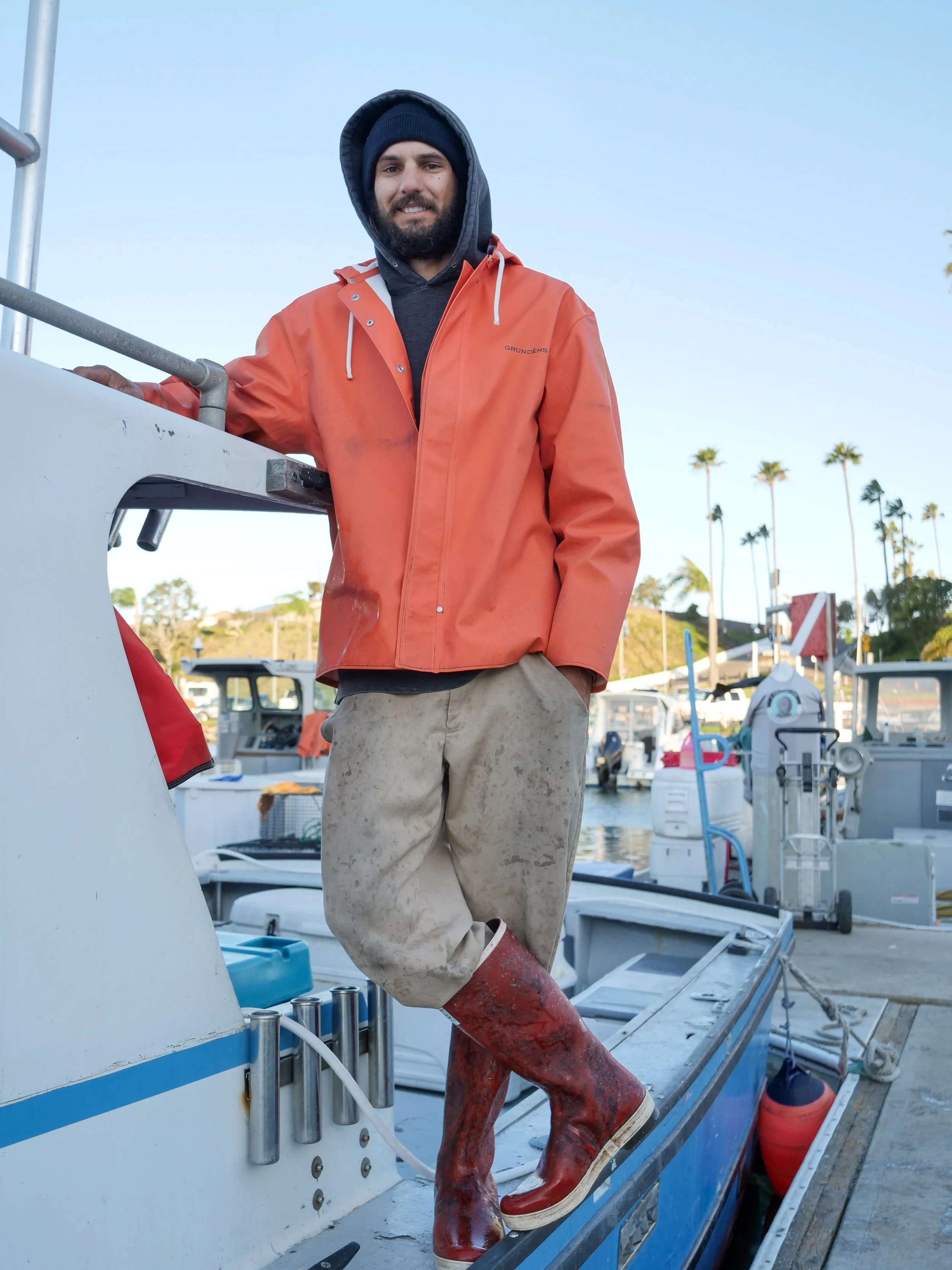 Darian is a local fisherman specializing in trap, hook & line, and Portuguese longline techniques. These methods ensure fish are brought onboard fresh while minimizing damage to the catch. He targets California spiny lobster (kept alive at the docks), Pacific mackerel, rockfish, and various other species.